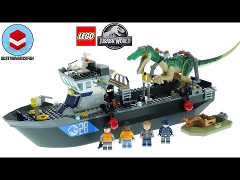 Особенности: Катер будет держаться на плаву, даже если разместить на нем такой тяжелый груз, как огромную рептилию. Сама модель барионикса подвижная и может двигать всеми конечностями, вращать головой и хвостом.