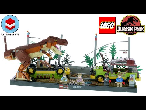 Воссоздайте одну из самых ярких и запоминающихся сцен из классического фильма «Парк Юрского периода» с набором от LEGO Побег Ти Рекса (76956 T. rex Breakout).